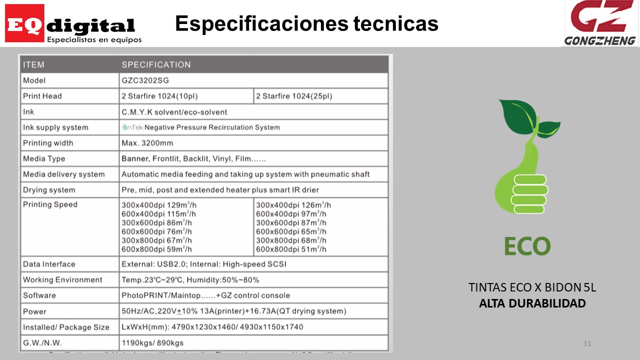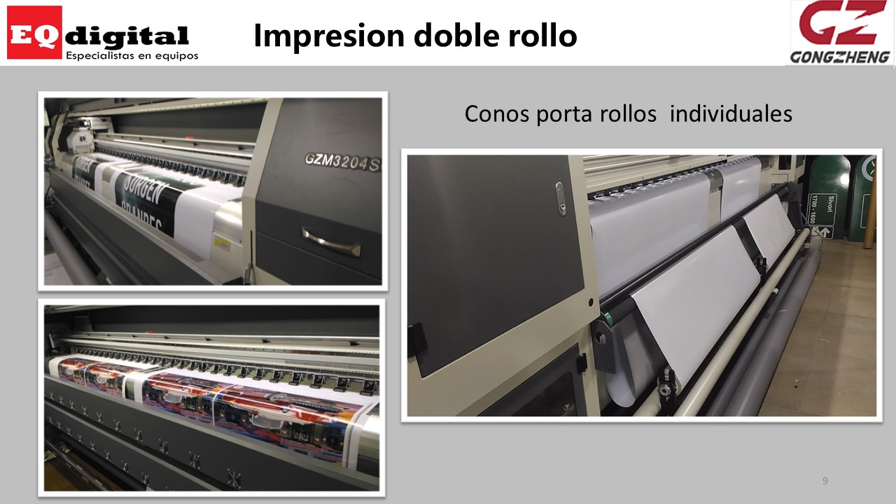 La impresora GZC3202 de formato super ancho es un modelo de alta productividad y calidad para la industria grafica que usa tintas solvente/eco de bajo costo y gran gamut de colores .Orientada al segmento de las impresiones de cartelería exterior e interior gracias y todo aquel segmento que necesite alta producción y bajo costo operativo gracias a su sistema de abastecimiento de tintas con presión negativa y recirculación dentro del cabezal que asegura la provision de tinta a alta velocidad y bajas pasadas. Única en su tipo debido a su punto de 10pl permite imprimir calidad a alta velocidad.